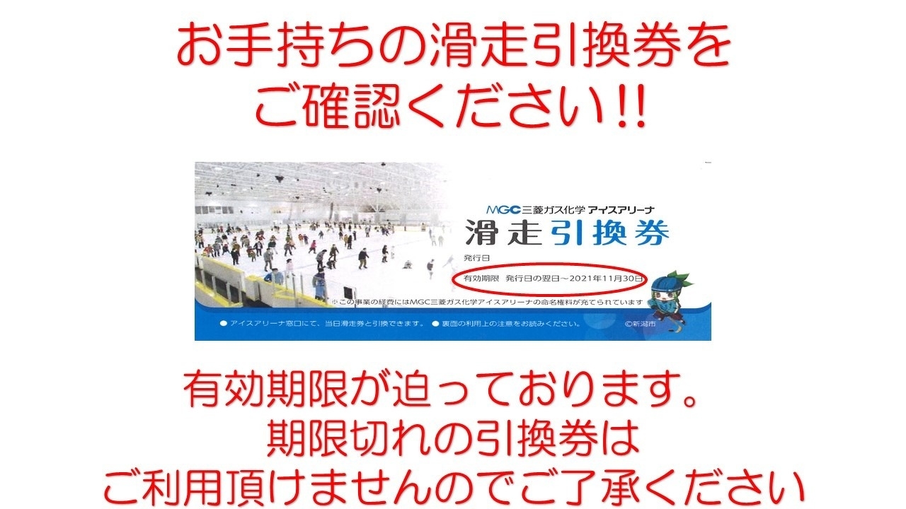 【滑走引換券の有効期限に注意】 2021年09月24日(金) 令和3年2月27日(土)~令和3年3月31日(水)に開催いたしました、『滑ってもらえるお得な滑走券プレゼントキャンペーン』で配布を行った滑走引換券の有効期限が迫っております。 期限切れの引換券はご利用頂けませんので、あらかじめご了承ください。