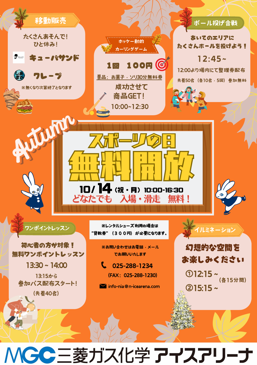 スポーツの日無料開放イベントの開催が決定致しました!!