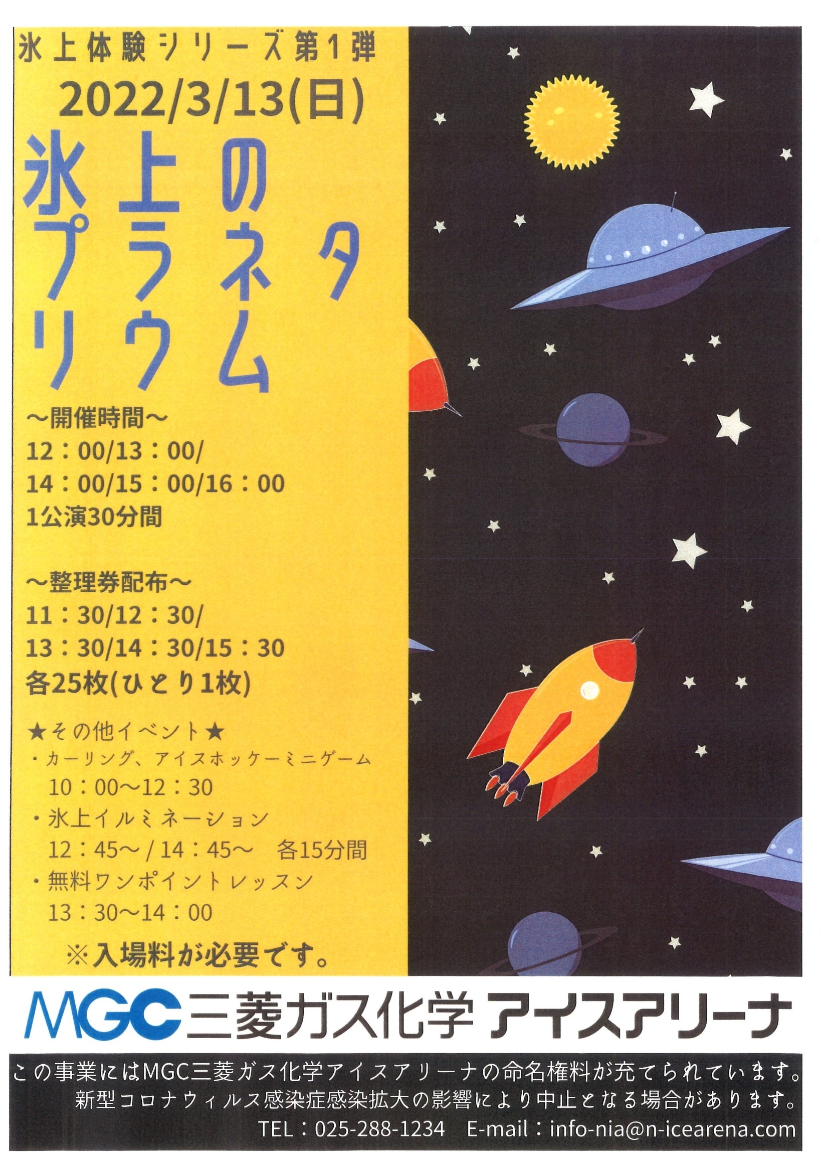 氷上体験シリーズ第1弾として、3/13(日)に「氷上のプラネタリウム」を開催!