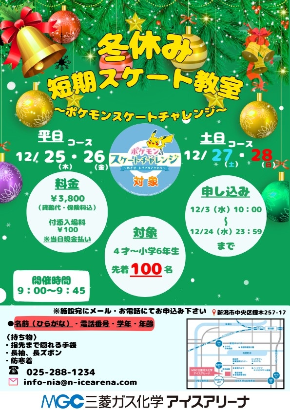 申込:12/3(水)~12/24(水)までに「なまえ・年齢・学年・電話番号」をお電話またはE-mailにてお知らせください