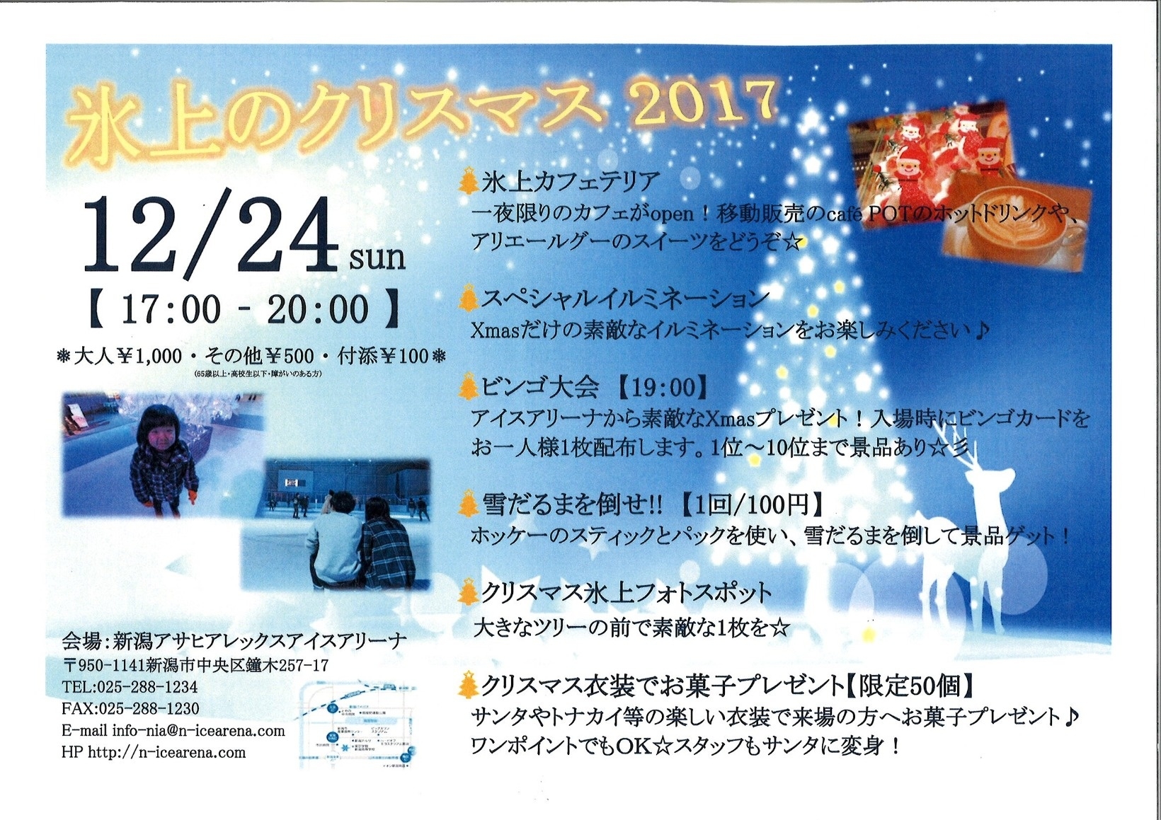 今年は12月24日(日)クリスマスイヴに、”氷上のクリスマ2017”を開催いたします。