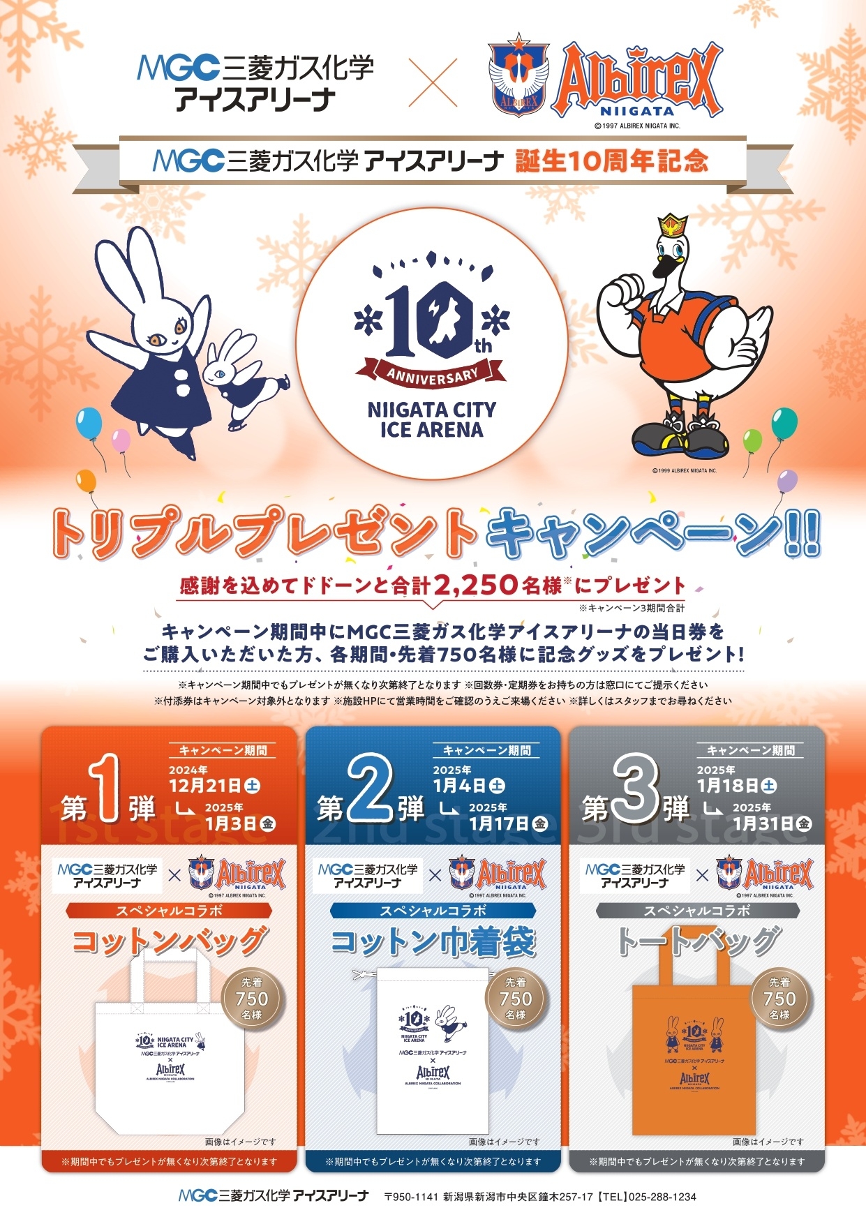 MGC三菱ガス化学アイスアリーナ10周年を記念して、アルビレックス新潟とのコラボ記念グッズをプレゼント!